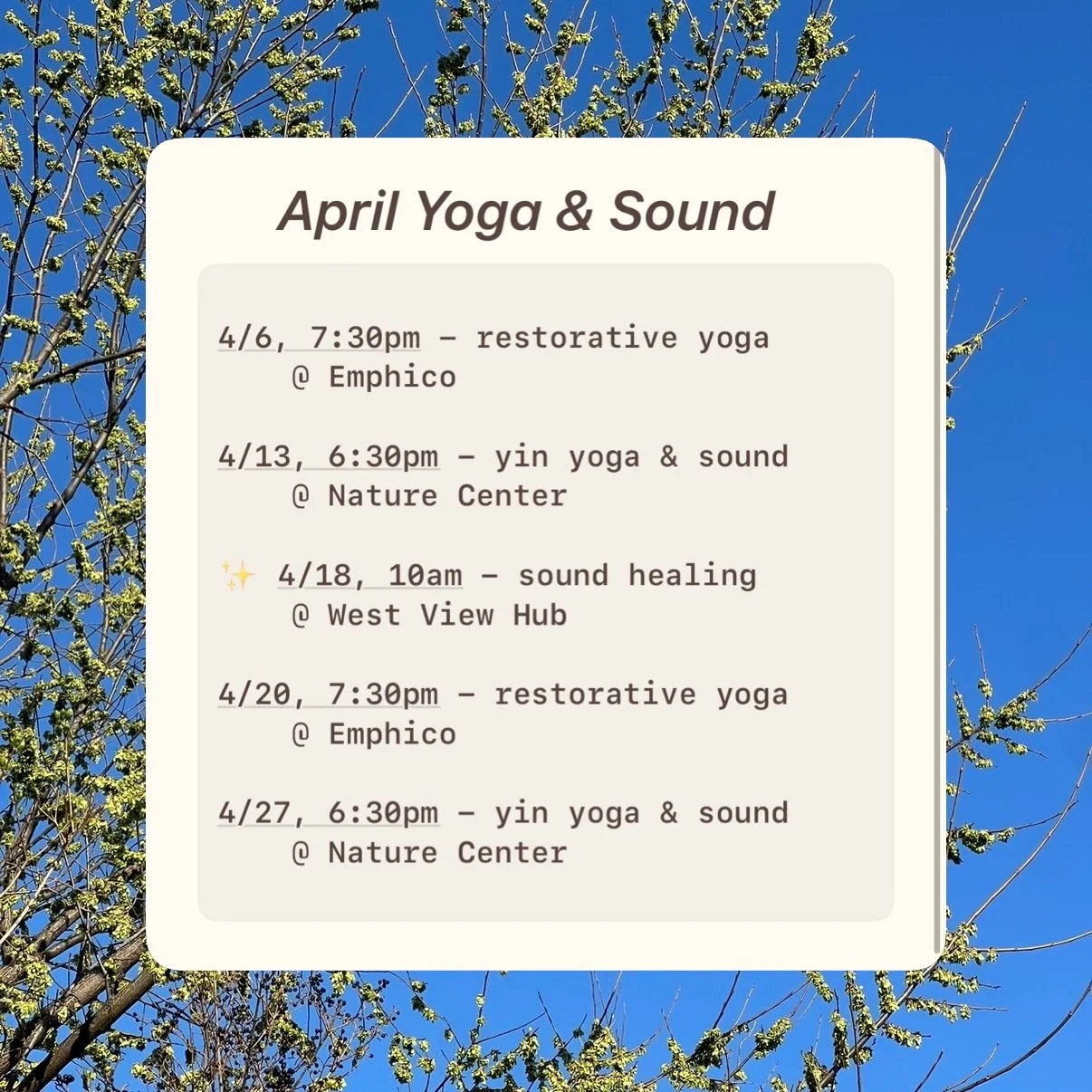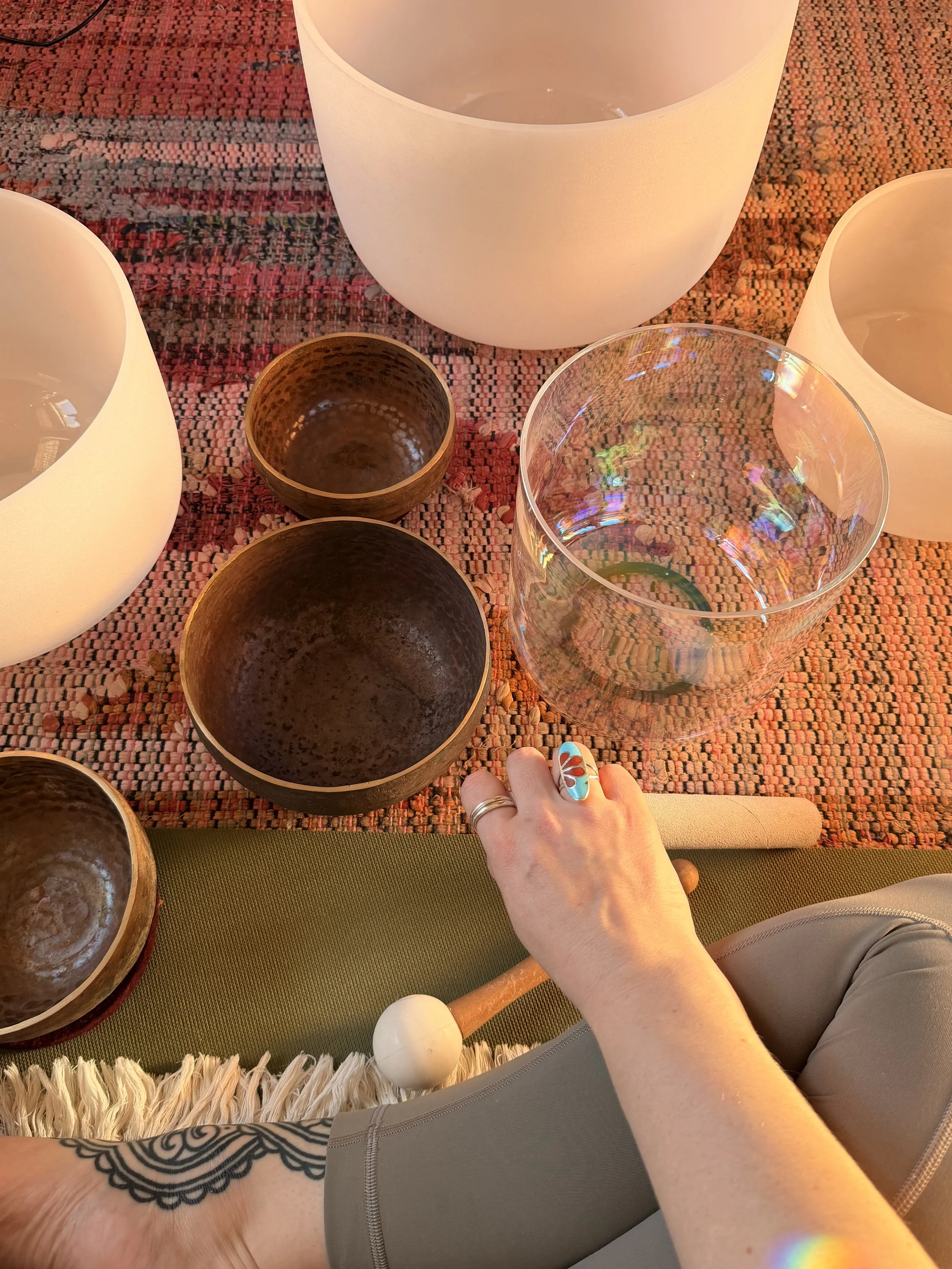 I host events that weave together yoga, sound healing, aromatherapy with essential oils, and other restorative practices. Each event is designed to create a calming, sensory experience that supports relaxation, balance, and overall well-being.