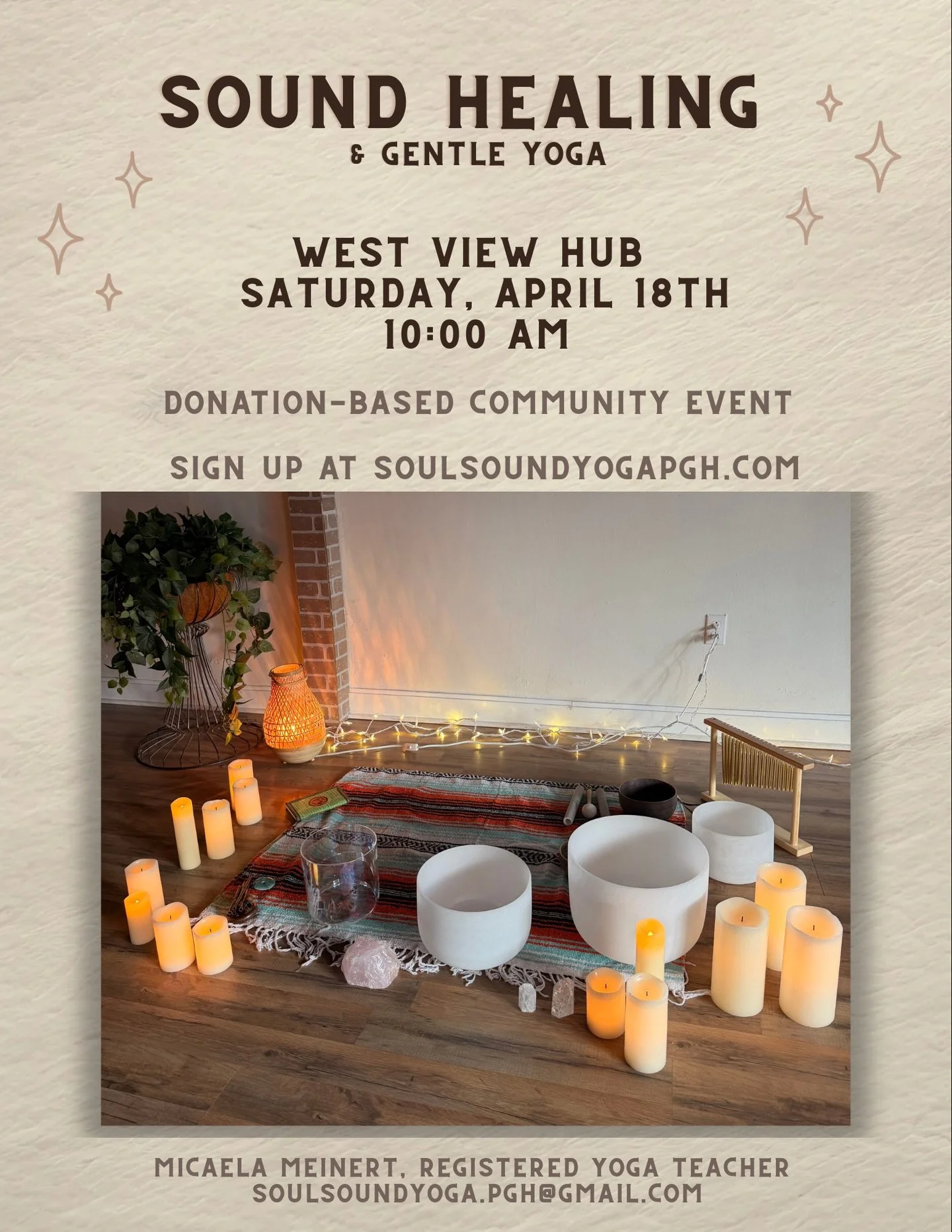 I’d love to collaborate with other wellness providers in the Pittsburgh area! Yoga and fitness studios, spas, massage therapists, acupuncturists, and businesses looking to offer yoga and sound healing services to their clients or employees.